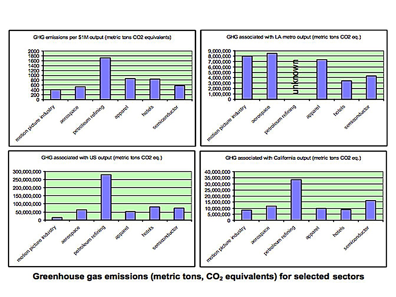 By the sheer size of its operations, the motion picture industry emerged as a significant contributor to air pollution, greenhouse gas emissions, and energy consumption in the Los Angeles Area. An important take-away from this study was that it broke the myth that motion picture industry is non-polluting.