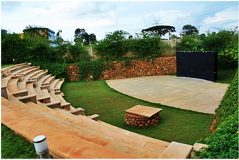 Open air theaters in concrete with no respite from the dreary, synthetic feel of cement is not our cup of tea at Zed and BCIL. This seating that can host 300 people in the rich, informal ambience of the 500-residents community of TZed Homes in Whitefield, Bangalore is another example of blending ecology and human needs.