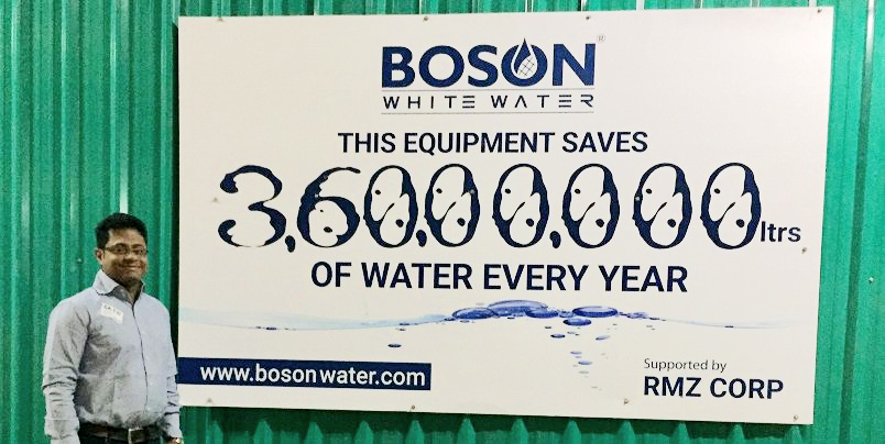 The Boson Whitewater system uses a patented 11-stage treatment process where each stage removes different contaminants, and the resulting water is said to meet the standards of potability. The system has IOT sensors to monitor the quality and quantity of water. Boson currently sells 10 lakh litres of water per day. So far, according to Vikas, it has saved 945 million litres from getting wasted.