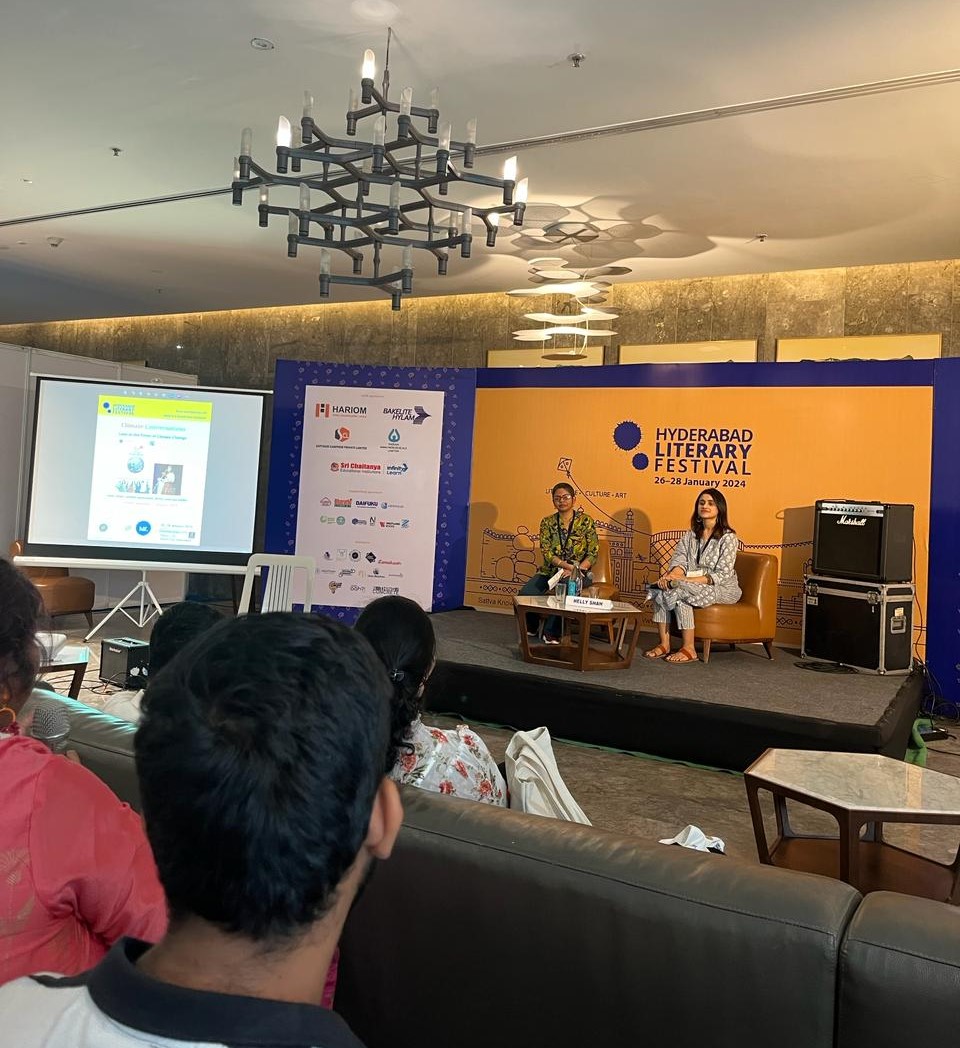 In the year 2030, as sea levels continue to rise and storms loom ominously over the cityscape, likely Mumbai, a couple deeply enamoured with each other, oblivious to the world around them, becomes ensnared in the tempestuous weather. This narrative unfolds in the opening lines of Helly Shah’s poem, “Ghar Khab Aoge?”, one of the seven poignant pieces featured in the spoken-word poetry project, “Love in the Times of Climate Change.” The project was introduced to the general public during a Climate Conversation session at the Hyderabad Literary Festival on January 27, 2024.