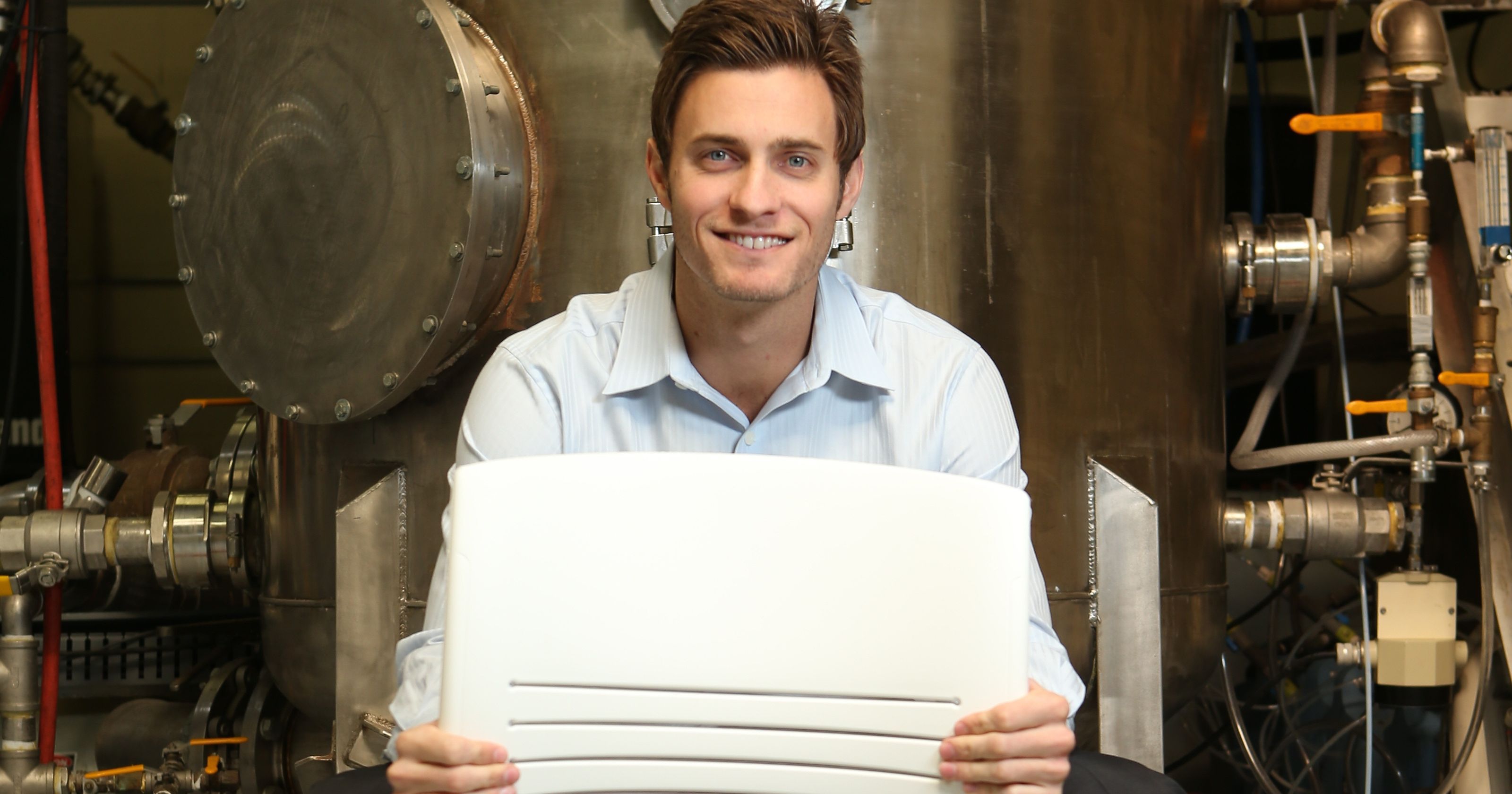 AirCarbon is a special material. It is produced in most known living organisms, from cattle, humans and trees; an evolutionary ancient molecule that is used to store carbon. It is biodegradable, as strong as plastic, and it can be melted and formed into shapes. First out of a garage, then dorm rooms, and then for many years out of a quiet facility in Southern California. Finally, seven years later, in 2010, they had a breakthrough, and discovered how to pull carbon out of greenhouse gas to make AirCarbon at a yield that had never been achieved previously: nine times higher than previous.