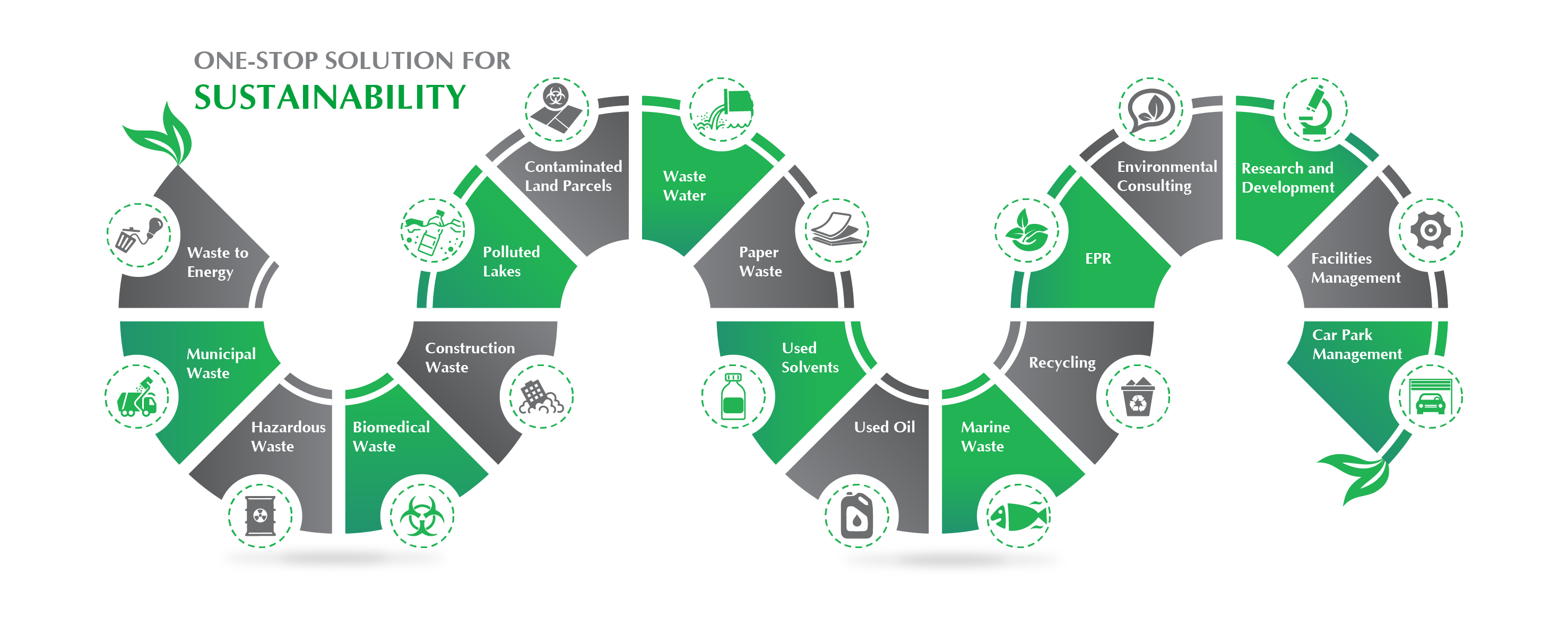 RE Sustainability offers a whole gamut of environmental services and infrastructure solutions under various categories such as Waste Management – hazardous, municipal, and biomedical, MARPOL, construction waste & e-waste; Waste to Energy; Recycling – wastewater, paper, plastic, and integrated waste; Environmental Solutions such as remediation, ETPs and wastewater treatment; automated car park management and Facilities Management.