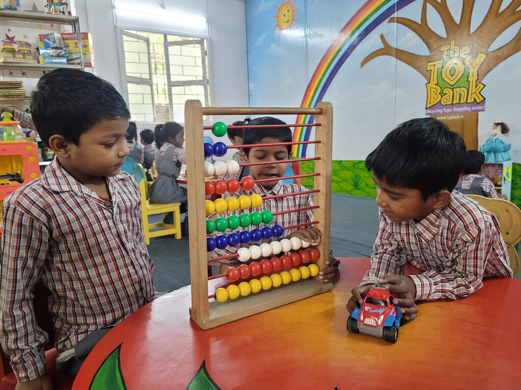 Recognising the significance of early childhood education the Toy Bank created Toy Libraries in Anganwadi centres to ensure the child’s development takes place through early stimulation through play-way methods. The Toy Libraries increase access to storybooks, rattle toys, educational toys and much more to involve the children in physical and mental exercise.