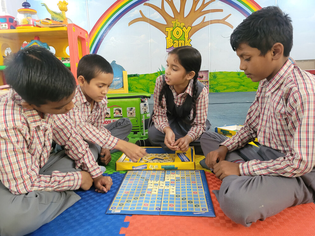 The Toy Bank built safe playrooms in municipal schools in New Delhi for children from the economically weaker section. A well-equipped playroom with appropriate child-friendly infrastructure, age-appropriate toys, and board games enables every child to participate in free play and recreational activities. The playroom contains a variety of toys, such as board games, puzzles, musical games, soft toys, life skill games, storybooks, and other educational toys, to involve children in physical and mental exercise. It focuses on providing holistic childhood development through play.
